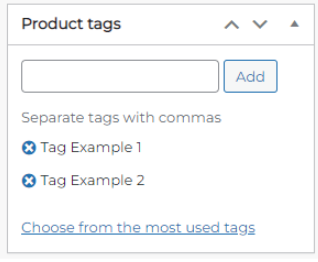 Events can be tagged using the ‘product tags’ section on the right hand side of the product edit screen.