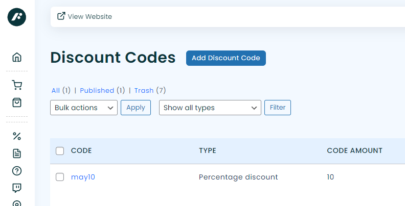 You’ll find this section by selecting ‘Discount Codes’ in the main navigation.